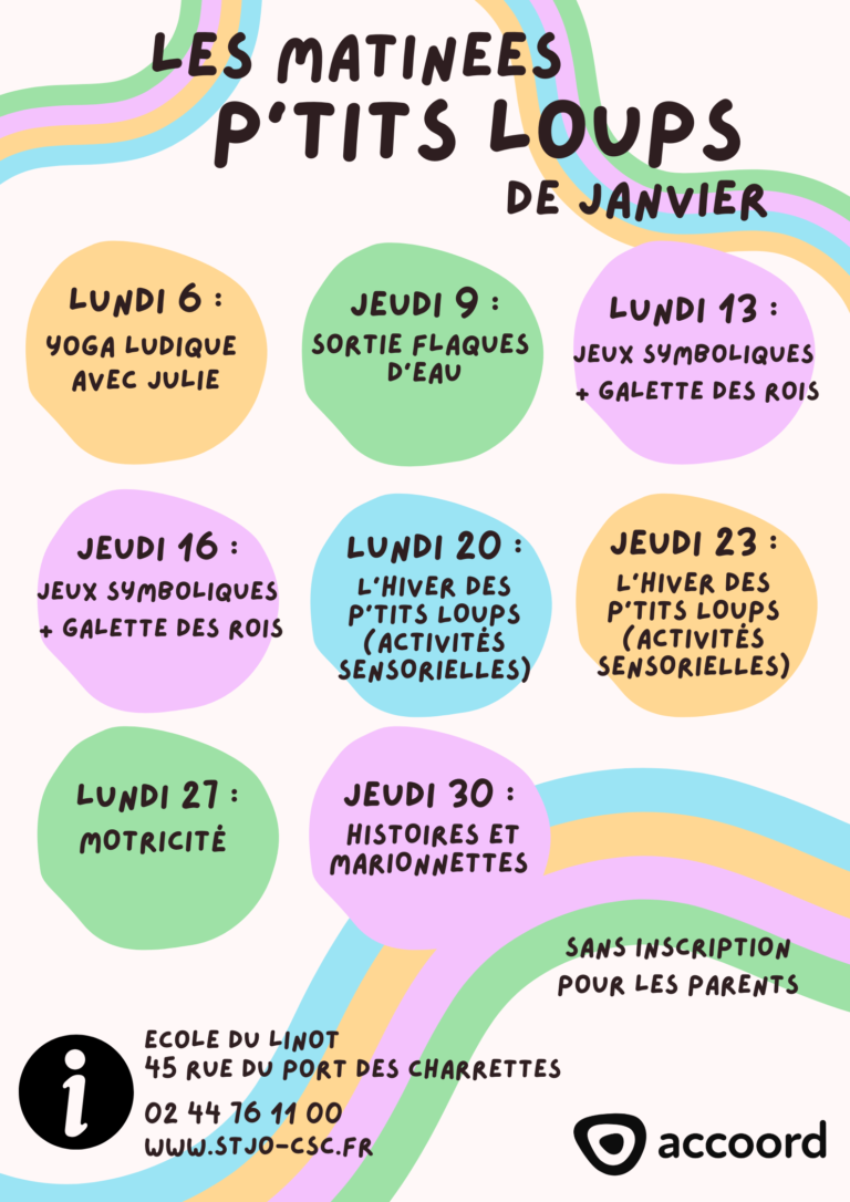 Matinées ptits loups Les matinées p’tits loups d’octobre pour les 0-5 ans de St Jo octobre 4, 2024 par Elisa
