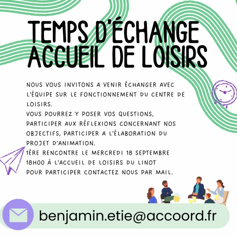 Centre de loisirs Temps d’échange – Accueil de Loisirs – 18 Septembre à 18h00 septembre 11, 2024 by Eva