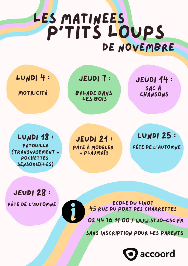 Matinées ptits loups Les matinées p’tits loups d’octobre pour les 0-5 ans de St Jo octobre 4, 2024 by Elisa