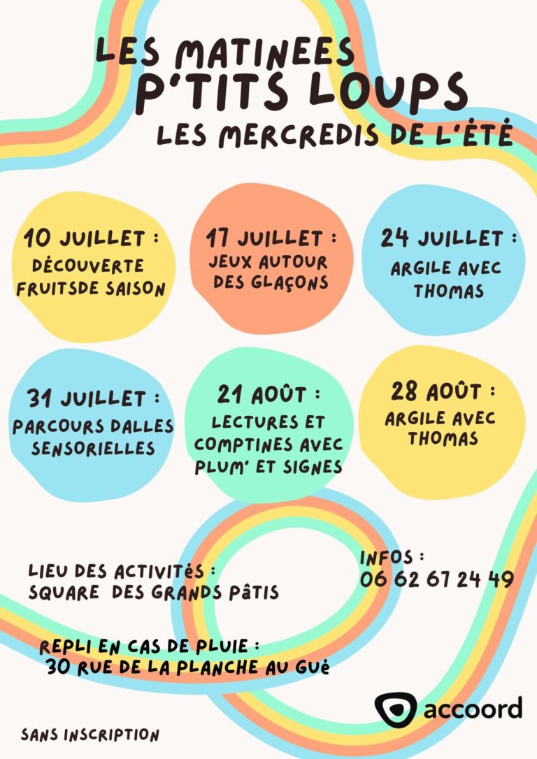 Matinées ptits loups Le programme estival des matinées p’tits loups est visible ci-dessous : juin 26, 2024 by Elisa